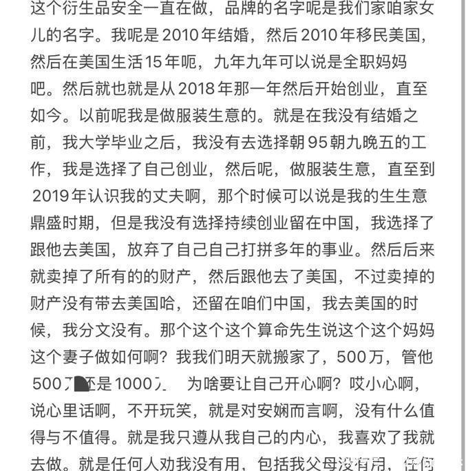 在当天直播时,安娴还告诉大家,自己2010年结婚,然后同年移民美国,在美国生活了十多年,在去到美国之后,自己还做了9年全职妈妈!